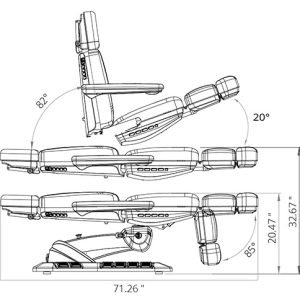 • Backrest Adjustment: Recline up to 82°, offering a comfortable position for treatments.