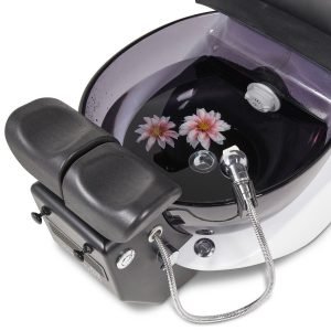 - A sleek and functional chrome sprayer enhances the pedicure setup for ease of use during treatments.