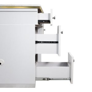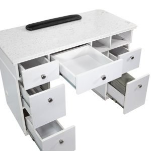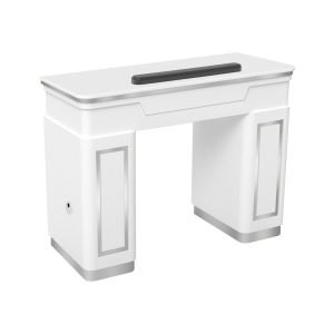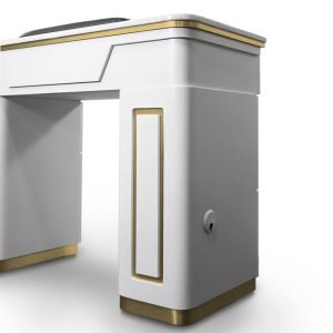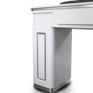 • Measuring 39.75 inches wide, 17.12 inches deep, and 30.75 inches high, the LuxeAir provides ample workspace for all your manicure tools and supplies while offering comfortable dimensions for client interactions. The spacious surface ensures that everything you need is easily accessible during services.