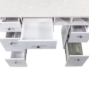 • The LuxeAir features a premium granite top that adds a touch of luxury to your salon. This durable surface is not only easy to clean but also resistant to wear, ensuring that your workstation maintains its sophisticated appearance even after daily use.