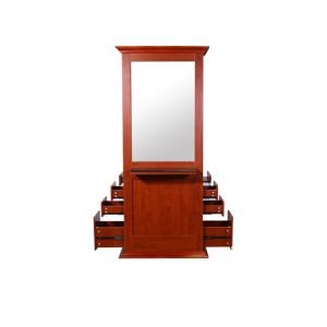 - Designed with the needs of professional stylists in mind, the LuxeCherry includes six spacious drawers and four adjustable shelves. These storage solutions provide ample space for organizing tools, supplies, and personal items, ensuring that everything is within reach and that the styling area remains tidy and efficient.