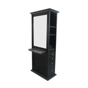 - The station features two pull-out surfaces, offering additional workspace as needed. These versatile extensions are perfect for accommodating extra tools or providing a dedicated space for mixing colors, ensuring that stylists have the flexibility to adapt their workspace to meet the demands of any service.