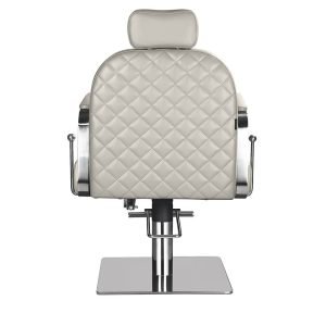 Step into sophistication with the LuxeStone Diamond Salon Chair, a statement piece designed for high-end salons. With its stone grey leather-look upholstery and striking quilted diamond stitch back, this chair combines luxury and practicality in equal measure, setting the tone for a modern, refined salon atmosphere. The fabric is not only visually stunning but also UV stabilized, cold crack protected, and fire retardant, making it a long-lasting and safe investment for your business.