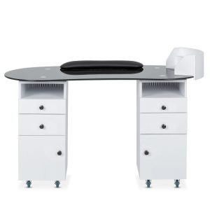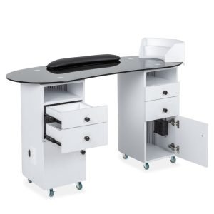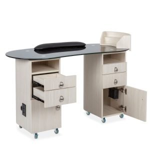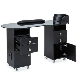 • Designed with the needs of professional nail technicians in mind, the ObsidianGlass Deluxe includes two cubby holes, four spacious drawers, and two cabinets. These storage options offer ample space to neatly store all your nail care essentials, from tools to polishes, ensuring your workspace stays organized and clutter-free.