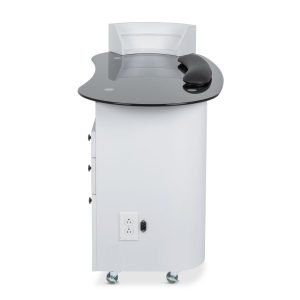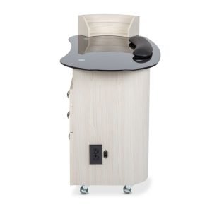 • The ObsidianGlass Deluxe features two UL-listed accessory outlets, allowing you to power all your manicure tools and equipment without the hassle of extension cords. This practical feature keeps your workstation neat and helps you maintain a smooth workflow during client services.