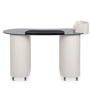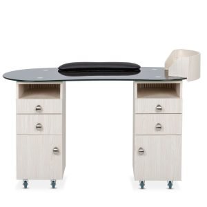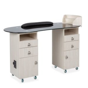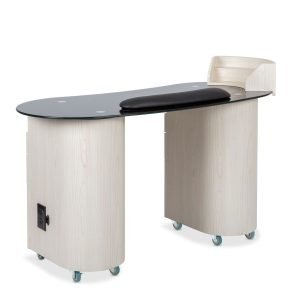 • This station is equipped with a removable polish rack for easy access to nail polishes, and a client wrist rest that provides enhanced comfort during services. These thoughtful additions are designed to improve both technician efficiency and client satisfaction.