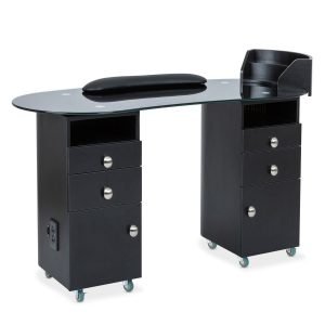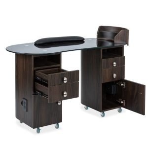 • With a width of 51 inches, a depth of 23 inches, and a height of 31.5 inches, the ObsidianGlass Deluxe provides a spacious work area that supports various manicure procedures. The large surface area ensures that you and your clients are comfortable throughout each session.