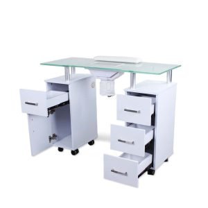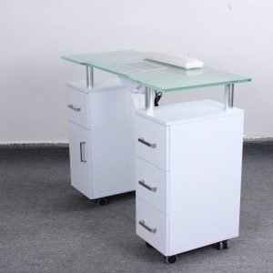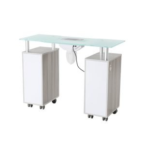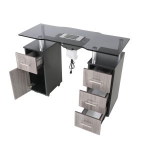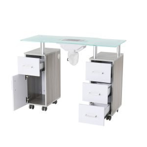 - The OpalVent is equipped with cabinets on either side, providing convenient storage space for all your manicure supplies and equipment. This keeps your workspace tidy and ensures that all tools are easily accessible during appointments.