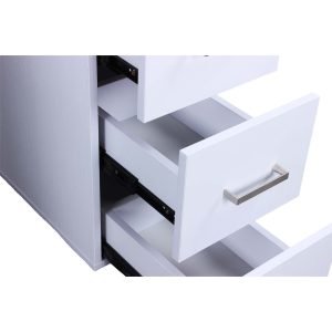 - The table top spans 40.25″ x 17.5″, with an outer distance between cabinets of 38.5 inches and an inner distance of 19 inches. Each cabinet measures 9.875″ x 15″ x 22.5″, offering ample storage for manicure supplies. The 4.75-inch clearance from the glass to the cabinet top ensures ergonomic accessibility for comfortable use.