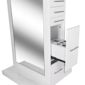 • A key feature of the PrismEdge Styling Station is its expansive mirror, which provides excellent visibility for hair styling, makeup applications, and other beauty services. The mirror enhances the functionality of the station, making it a versatile addition to any professional salon setting.