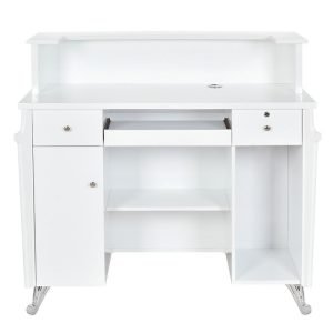 • The desk includes a keyboard slide-out tray, promoting an ergonomic setup that enhances comfort and productivity for reception staff. This thoughtful design feature helps reduce strain during long working hours, ensuring a comfortable and efficient work environment.