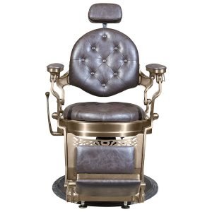 Introducing the Sovereign Legacy Barber Chair, where old-world elegance meets modern functionality, perfect for barbershops that cater to discerning clients. This chair features deep brown upholstery, complemented by brushed bronze metalwork, creating a refined, sophisticated atmosphere in any shop. The buttoned detailing on the seat and backrest adds a classic, vintage touch that brings a sense of history and craftsmanship to your space.